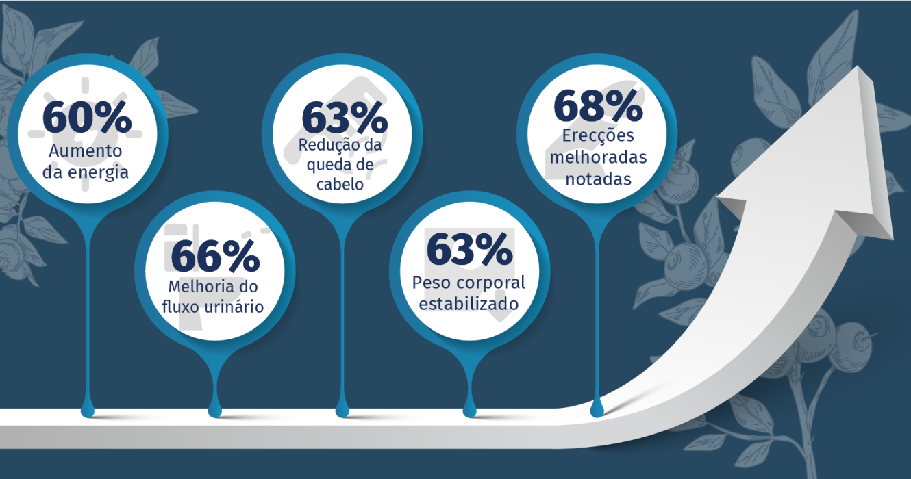 ✔ Fluxo urinário melhorado em 66%* após 2 meses de utilização.