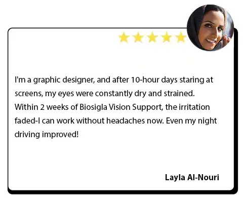 After long shifts in this heat, my eyes would get so dry and red that I kept missing turns. Started taking Biosigla Vision Support – all-natural, no chemicals – and now no more burning, no more squinting. Even my wife says my eyes look whiter!